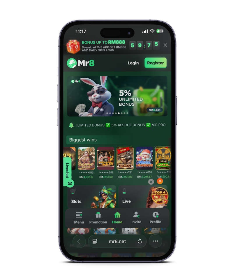 Mr8 is an online entertainment business. Come play a fun game and get fantastic goodies. Mr8 is a secure Malaysian online casino with lots of games, secure payment methods, and helpful customer service.